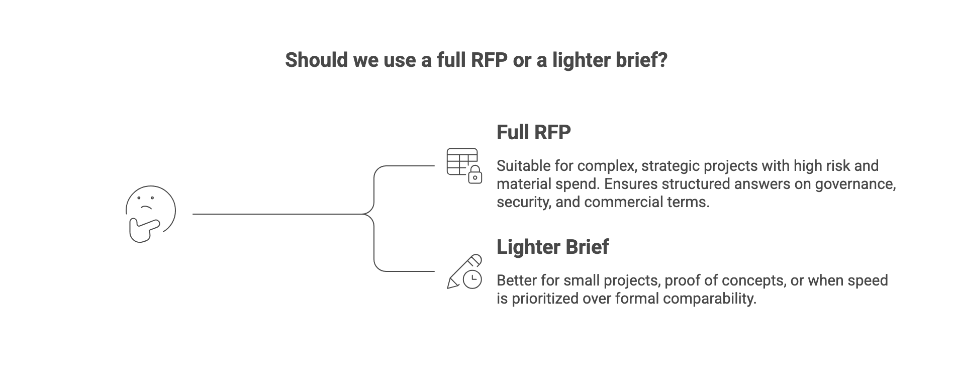 Next step: Decide whether you need a full RFP or a lighter brief by checking spend, risk, and how many vendors you truly want to compare.