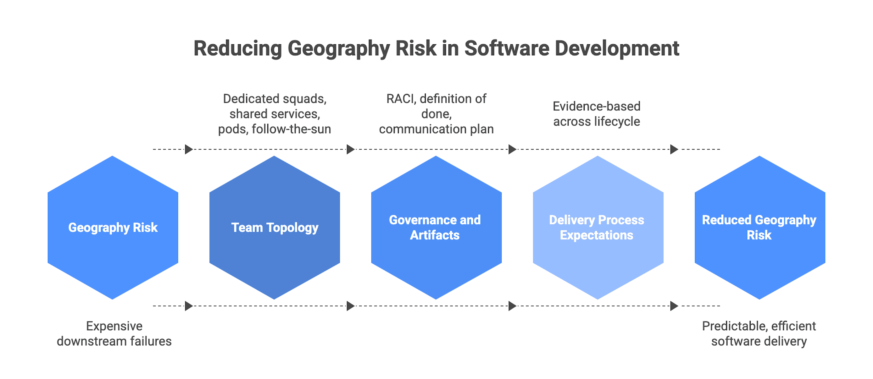 - Geography is a proxy for collaboration constraints (overlap hours, travel feasibility, scheduling). Outcomes still depend heavily on vendor capability and governance.