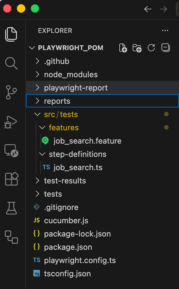 npm run cucumberBy default, tests run in headless mode. To see the browser, set headless: false in Playwright’s launch() options in the job_search.ts file.