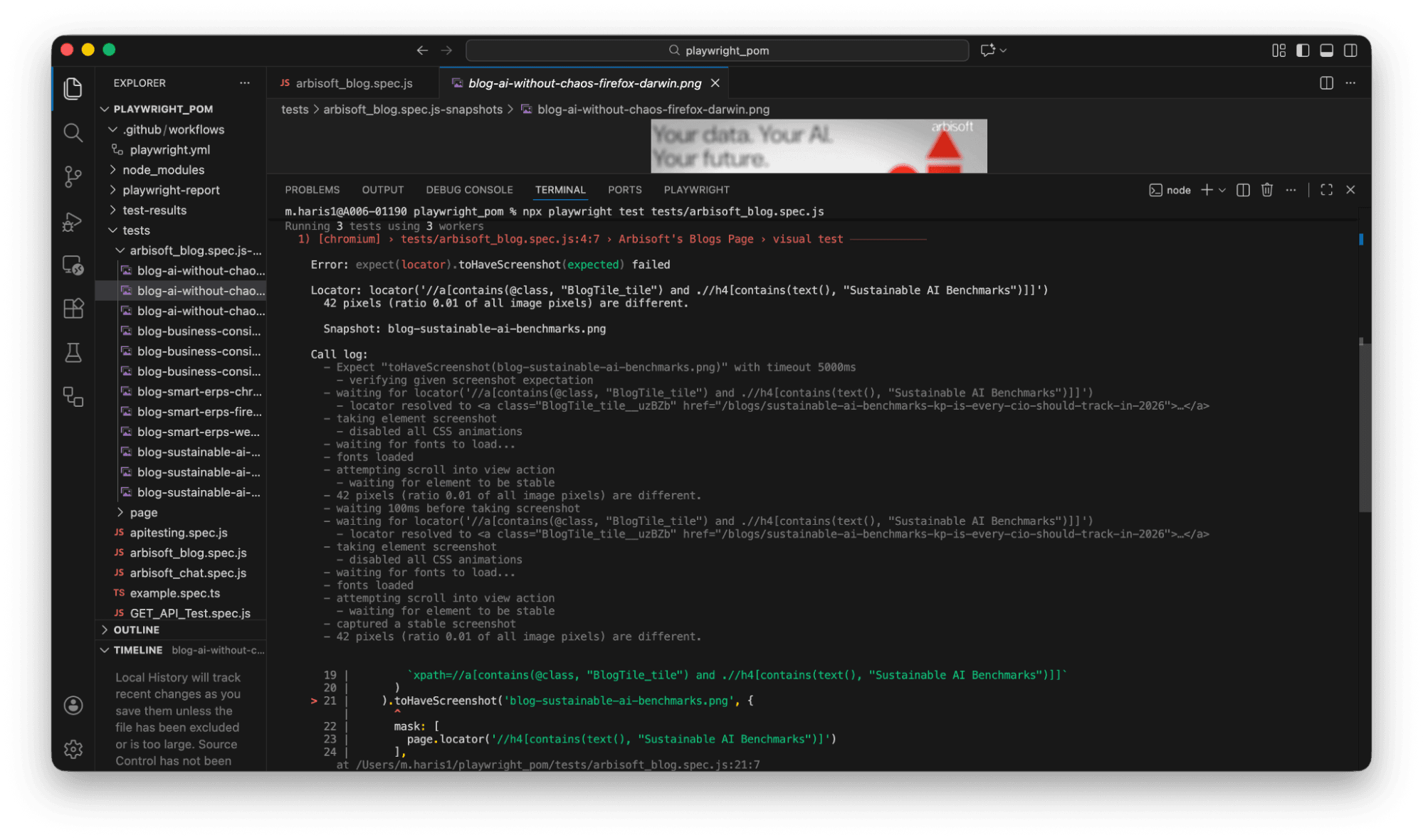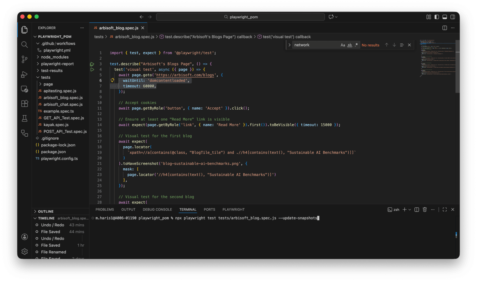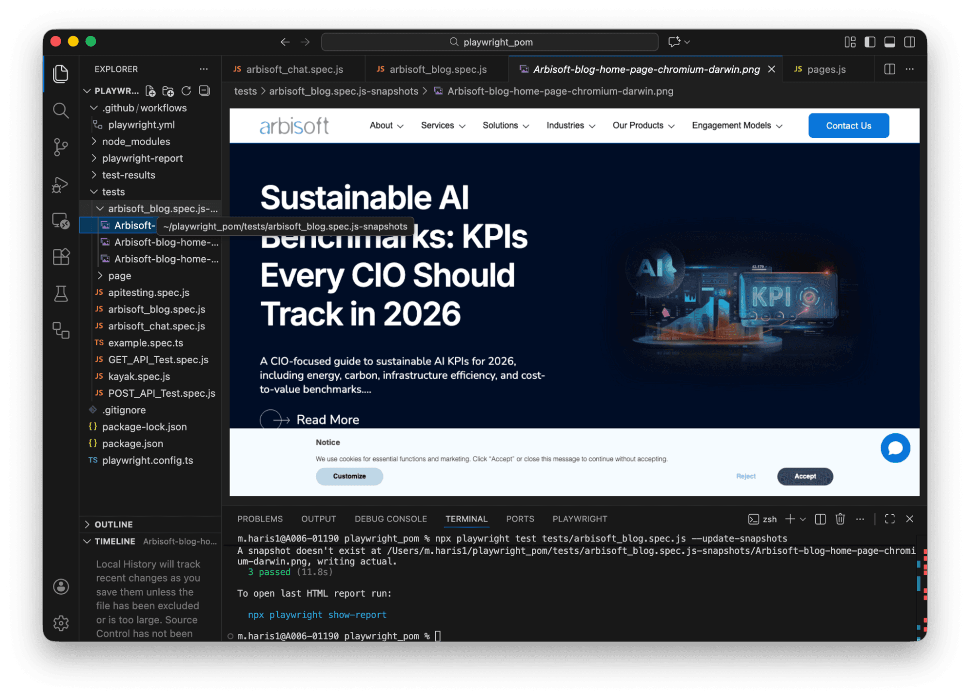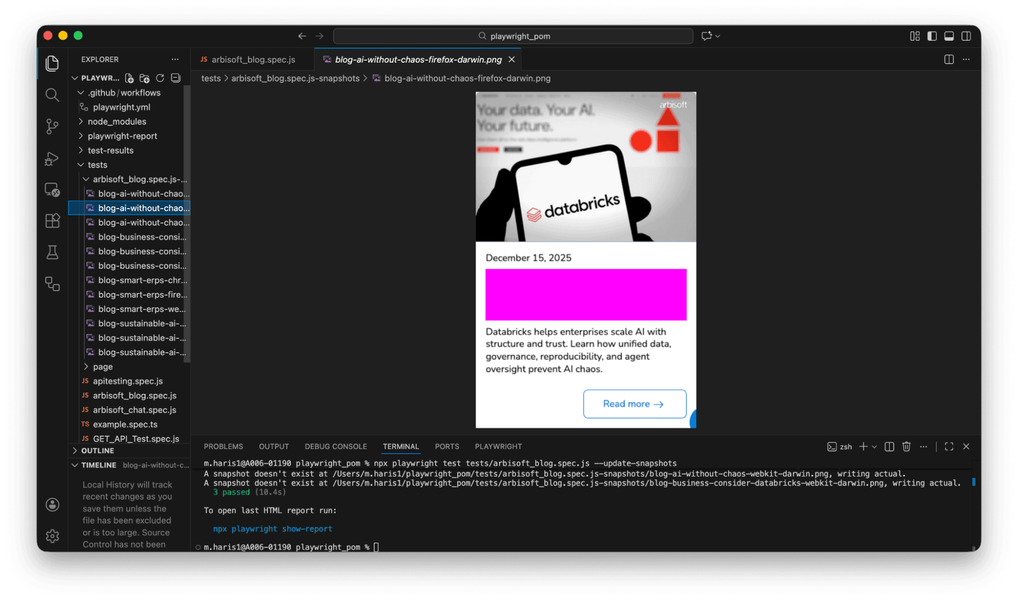 npx playwright test tests/arbisoft_blog.spec.js --update-snapshots