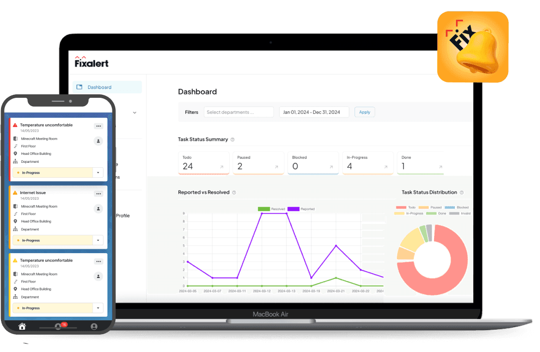 - Fixalert is an intuitive maintenance management system designed to streamline complaint handling and automate maintenance processes. It features real-time updates, QR code scanning, micro-surveys, and automated notifications to ensure efficient and transparent task management.